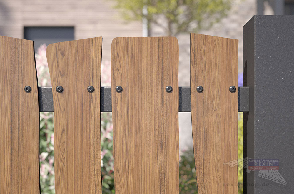 Unser Lattenzaun besteht aus hochwertigem HPL im attraktiven Holzdekor. Er ist in verschiedenen Breiten erhältlich und kommt als Set mit Zaunbrettern, Rahmenprofilen aus Aluminium, Füllleisten und Montagematerial.